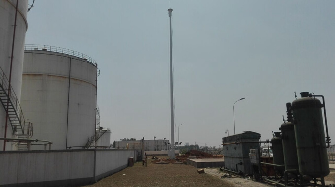 唐山楊官林油庫25米高桿燈,配置光源4盞,400瓦/盞上海亞明金屬鹵化燈,配置一套360度球機攝像頭。