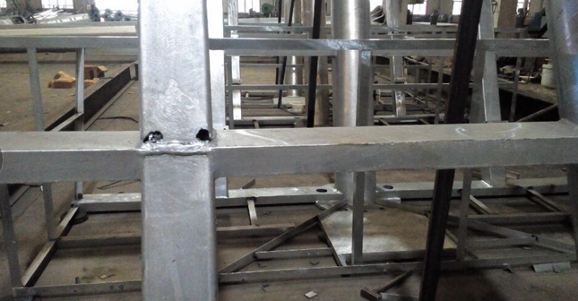 在制作時通常在不顯眼的位置預留出放氣孔。但這個放氣孔并不能最終決定鍍鋅方面的合理位置。鍍鋅時有些配件,如高桿燈燈盤,因為它的連接結構相對復雜,還需進行二次切割,這時候的切割孔就不能保證割在暗處了,鍍鋅廠的二次割孔不是為了排氣,而是為了將鍍鋅水從器件中通過合理的氣孔位置全部流出,這樣做的原因很容易解釋,那就是鍍鋅原材非常貴,如果都隨著鍍鋅燈桿帶走的話那非得賠壞了不可。